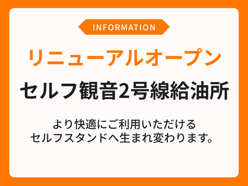 セルフ観音2号線給油所 11月14日(金)10:00 リニューアルオープン