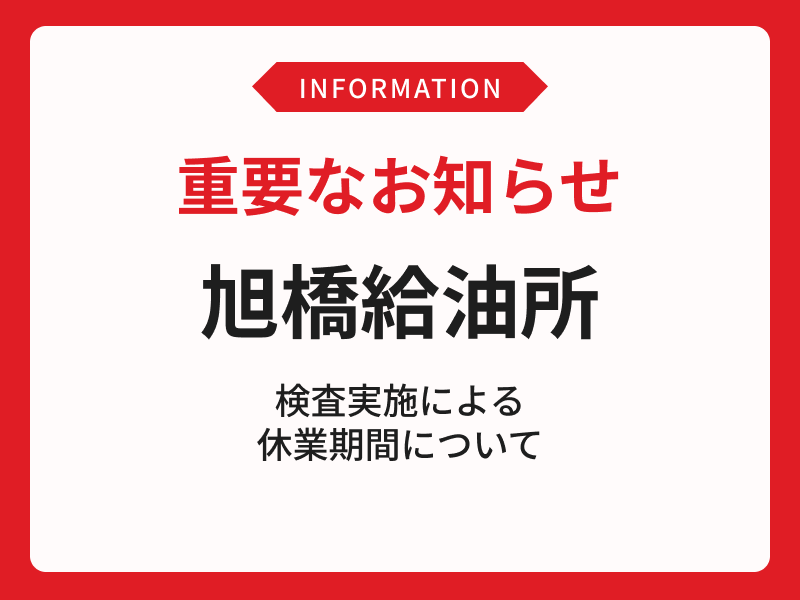 旭橋給油所 臨時休業のお知らせ 令和7年11月21日(金)~24日(月)